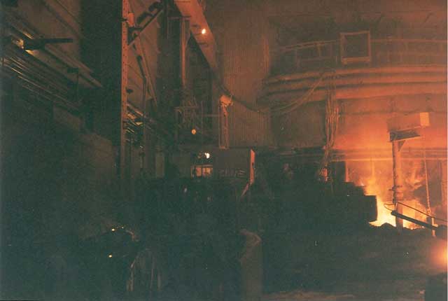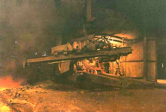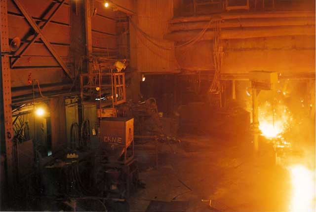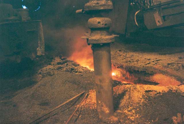 | The following shots are self explanatory. I just stood and took a whole roll of film. Most from the raised balconey type area near the front of the cast house where the office and changing room was. The pictures towards the end were taken after the pour was nearly over and we were allowed down on the casting house floor itself. |