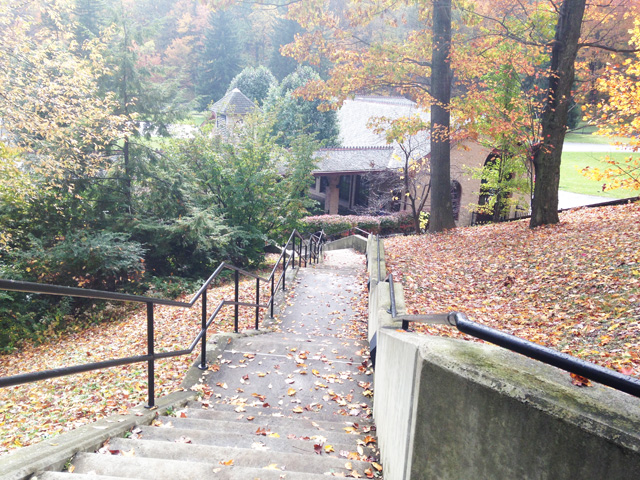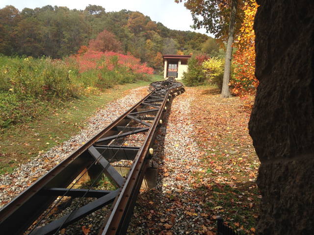 | The funicular waiting at the bottom | I decided to take the stairs. The view was great |
